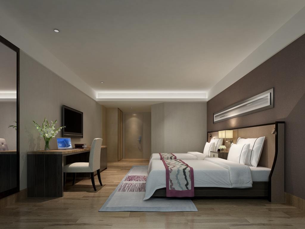 最后就是主卧了,从图中一眼就能看出,很简约的布置。白色的墙面、灰色的木质地板,搭配起来简约又不失自然。原木的床搭配格子图案的床上用品,与白色百叶衣柜门组合非常的协调,加上床头柜上摆放着美丽的鲜花,让卧房的色彩不那么单调。