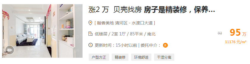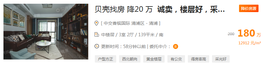 还有一套位于生态新城中交香槟国际的房子,24小时之内降价20万!这是一套建面约139㎡的3室2厅户型,位于中楼层。根据房屋时光机可以看到,这套房源在2021年3月上架,当时的报价是280万,业主上调一次房价之后一直在降价,目前报价为180万,房源均价约12912元/㎡,接近小区的最高参考价。市场就是这么残酷,购房者并不会因为你的房子更早挂出来而去关注,大家更关注的是房价、位置、学区这些实实在在的东西。当下的淮安楼市,回暖趋势越来越猛,随着二手房成交量的攀升,业主挂牌积极性也逐步提升不少,这也导致淮安二手房挂牌量进一步增长。