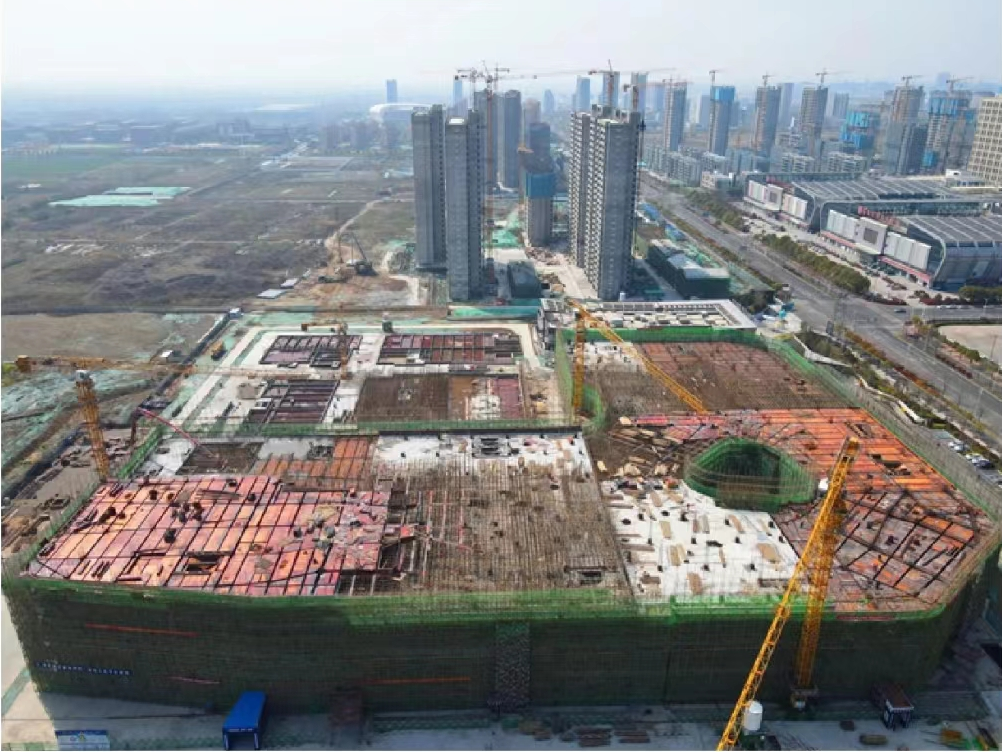 如今,爱琴海购物公园正在如火如荼的建设中,截止3月底大MALL的主体结构施工至4层,部分施工到了5层。