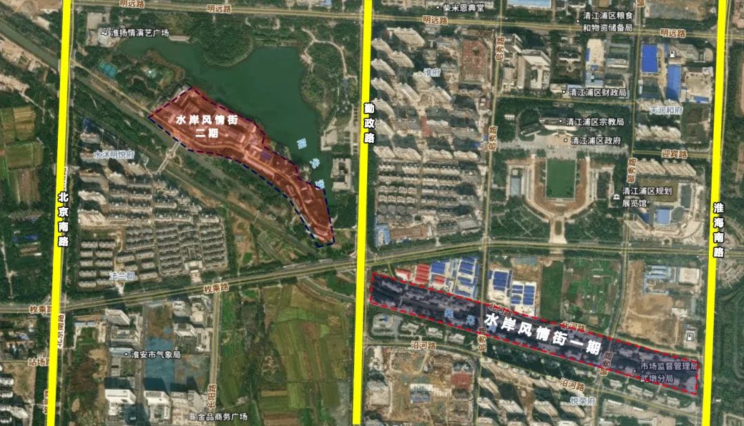 这家商业街区便是位于清江浦区南部新城板块的,清江古韵·水岸风情街区。