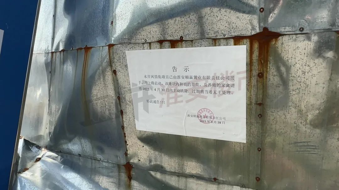 公告显示,目前水岸风情项目已被淮安顺赢置业有限公司接手,并且马上即将启动。