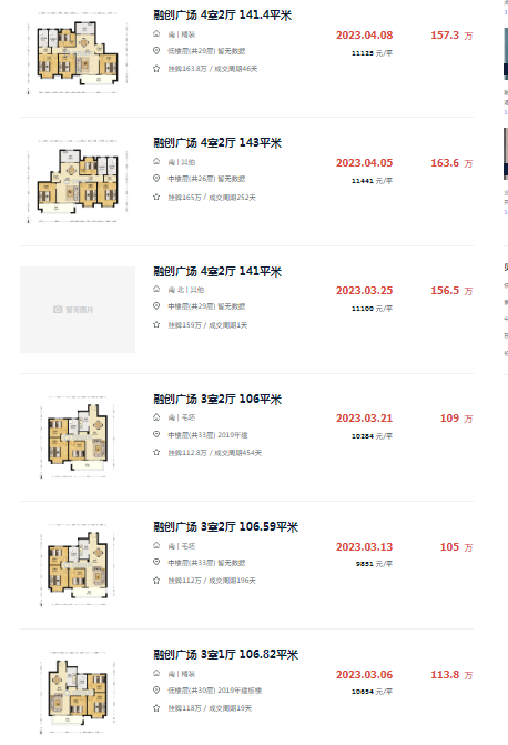 除了少量9字头的砸盘成交外,房源成交价几乎都在1.1万元/㎡左右。