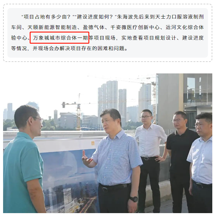 就在8月8日今日清江浦的推文中,明确表明了清江浦区区委书记前往了“万象城城市综合体一期”实地查看了项目的建设进度!
