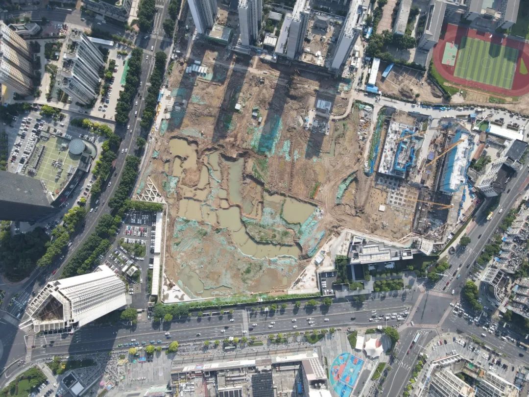 而万象城的建设进度,小编也航拍到了画面,商业体的建筑暂未出地面,据介绍,目前是已完成桩基部分的工程。