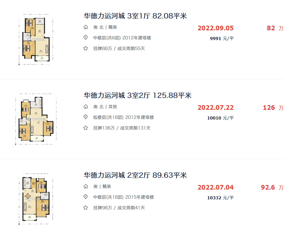 要知道在2022年7月份,华德力运河城当时的成交价也还要万元左右,但转眼间,也就1年的时间,成交价竟相差了约3000元/㎡…