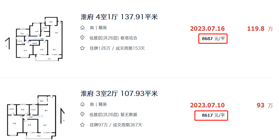 从最初成交价9500-10000元/㎡,已经跌出了9000元/㎡,最新的两套成交房源,单价只有8千+!