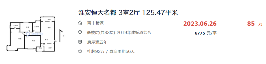 在贝壳网上一共可以搜索出3057套房恒大商圈的二手房,挂牌量非常大!